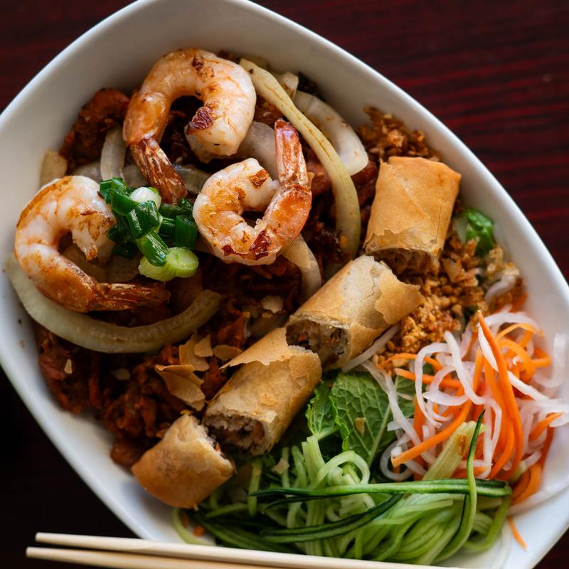 Chargrilled shrimp, pork and eggroll with vermicelli